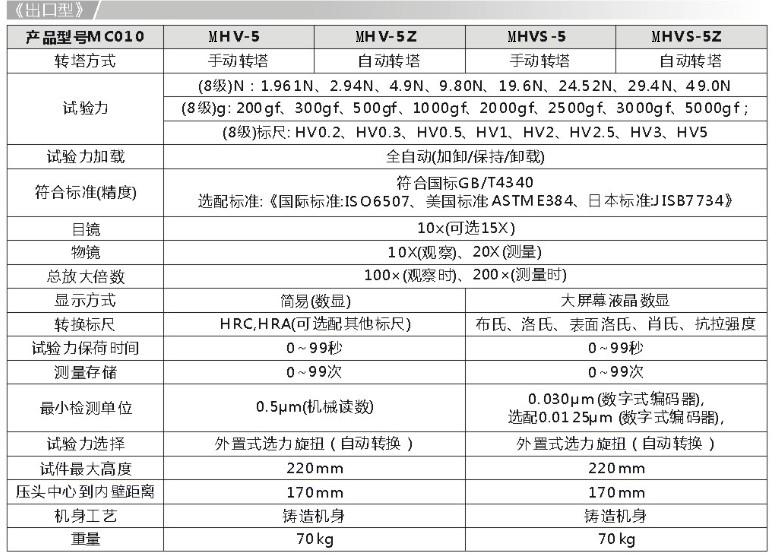 三、MHV/MHVS系列視頻測量硬度計(jì)技術(shù)資料: